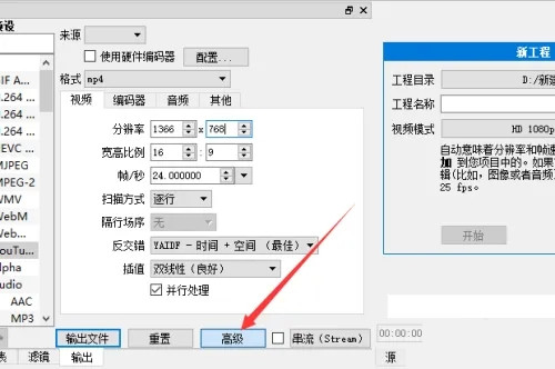 5、调整视频输出分辨率后再选择“高级”按钮就可完成。