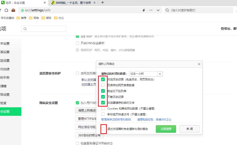 360安全浏览器怎么设置退出时自动清除痕迹?下载