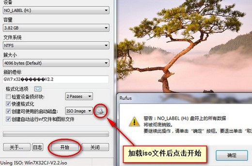 2、插入设备选项,选中下载的华为鸿蒙系统镜像文件,其他默认,点击开始。