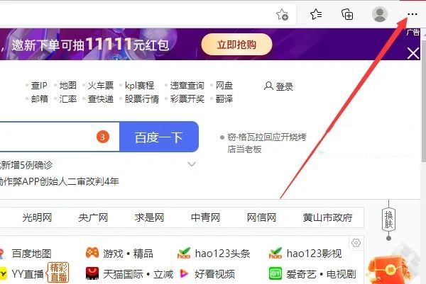 2、进入到该浏览器以后点击右上角的三个圆点。