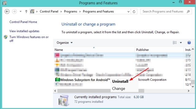 找到WSA,单击三个水平点并选择卸载。