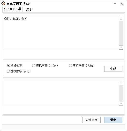 文本变形工具免费下载1.0 软件下载 12月 05, 2023 0 king 文本变形工具能够让你输入的文本进行变形,就是在文本中穿插随机字母和数字,这样一来一些文本通过处理就能轻松的发到一些论坛上,只需要下载打开软件,在上方输入文字,知识兔选择要在中间插入的字符串,点击生成,即可生成被打乱的文字。 使用说明 1、在上方文本框中输入要转换的文本。 2、在中间设置转换的样式。 3、知识兔点击生成即可。 下载仅供下载体验和测试学习,不得商用和正当使用。 下载体验 请输入密码查看下载! 如何免费获取密码? 点击下载