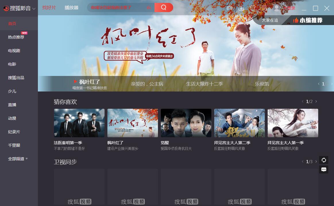 你可以搜索搜狐视频或者像优酷等其他视频网站上的视频,自己喜欢的电影或电视剧还可以直接放到桌面上。