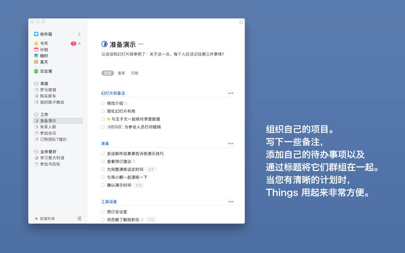 Things 经过彻底改造,具有出色的新功能和漂亮的新设计。针对 Mac 的新增功能如下: