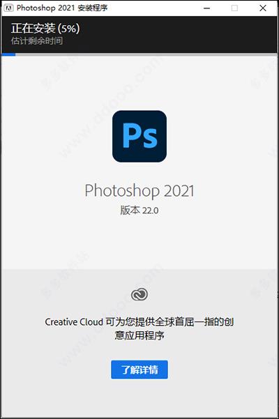5、至此,photoshop最新版本已安装成功,打开软件即可使用。