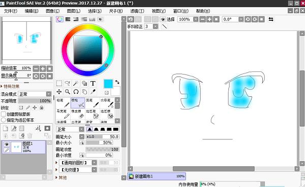 10、前面的步骤如果知识兔走到位了,就可以打开Sai软件来看看笔刷是不是出现在对应的位置了,然后知识兔再空白画布上画一画试一试。
