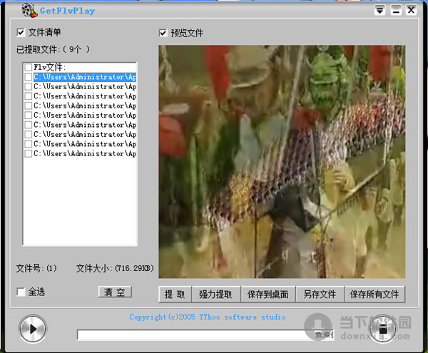 1、快速Flv播放功能。2、强力提取加密的flv文件。