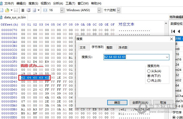2、打开data_sys_sc.bin后搜索数组。按照武将统帅、武力等参数进行修改即可