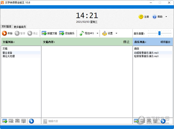 您可以通过“音量调节”来调整音乐的音量,知识兔以便背景音乐与语音播报的音量更为匹配。