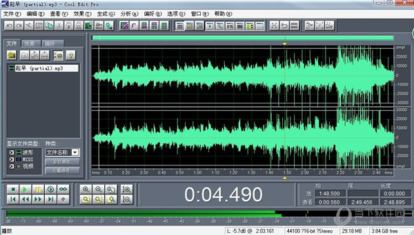 2、你可以同时处理多个文件,轻松地在几个文件中进行剪切、粘贴、合并、重叠声音操作。使用它可以生成的声音有:噪音、低音、静音、电话信号等。该软件还包含有CD播放器。