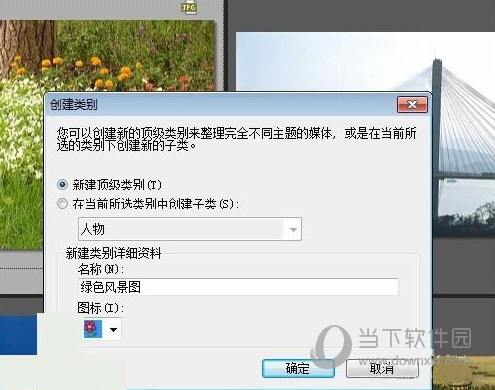 2、例如:新建类别为顶级类别,名称为绿色风景图,图标自选