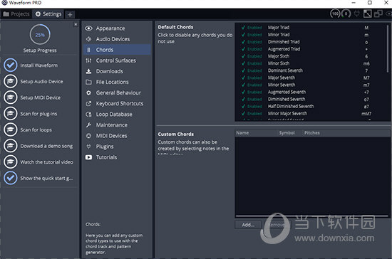 Waveform Pro破解版是一款功能齐全的音乐制作软件,集合了琶音器、和弦伴奏、音符重复器、MIDI监视器、虚拟乐器、波形混频器等各种音乐制作相关功能,能够充分发挥出用户的个人音乐风格,软件适用于电影配乐、现场声音、表演等场景,满足用户的各种音频处理功能需求。