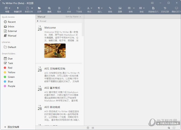 便捷的图形化辅助编辑功能。如果知识兔对 Markdown 语法还没完全熟悉,Yu Writer 内置了一些便利的图形化辅助编辑工具帮助你完成文档,比如链接、图片、任务列表、表格等生成及编辑工具。另外 Yu Writer 还内置了 Markdown 语法实时检查和文档自动美化功能。