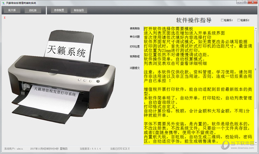 天籁高级版增值税辅助系统是一款简单实用的辅助打印工具。为用户避免了增值税票右边打印不全的问题,分为航天版和百旺版,知识兔可以轻松打印发票,仅供收款、资料管理、学习使用。