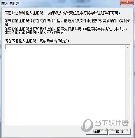 4、打开软件的输入注册码选项后,将生成的注册码鼠标右键完整的复制,将其粘贴到该窗口的空白处,知识兔点击“确定”。