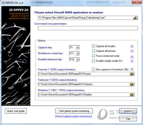 1、打开3D Ripper DX,知识兔选择游戏的exe文件。记下你的截取按键,然后知识兔按下launch执行游戏