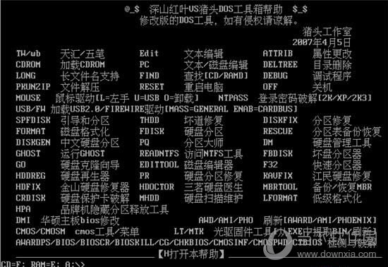 猪头DOS工具是一款专业免费的DOS软件,该软件采用Linux系统的核心grldr进行引导,引用深山红叶的DOS工具img,和MaxDOS的img进行引导处理,非常适合修电脑的人使用。