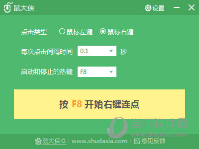 答:鼠大侠启动热键,默认为F8,知识兔可以很方便的修改为F1-F12,知识兔也可以修改为其他自定义热键。