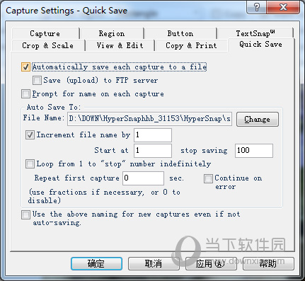 首先如果知识兔你想要快速保存,那么请在捕捉设置页面中的【快速保存】一栏,勾选自动将每次捕捉的图像保存到文件。然后知识兔设置图片保存位置,这样一来下次的每个截图都会自动保存,省去你一张一张去手动保存。同时在自动保存设置中,请注意文件保存的名称。