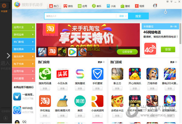 4、手机连接到搜狗手机助手应用中心,分享免费应用推荐和应用下载。