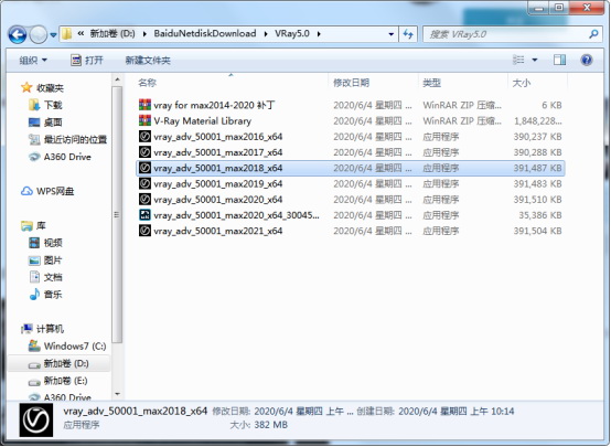 压缩包下载成功后解压到当前文件夹,知识兔选择和自己max版本相同的Vray知识兔双击运行。