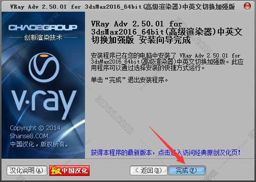 vray2.5 for 3dmax2016安装完成,知识兔点击继续。