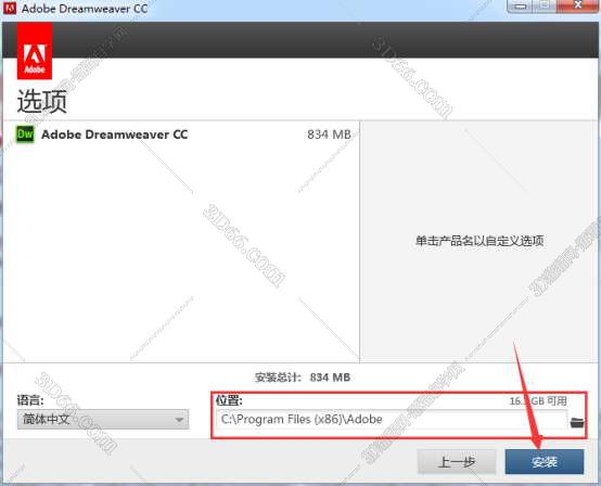 打开之后选择adobe dreamweaver cc,再知识兔点击install。