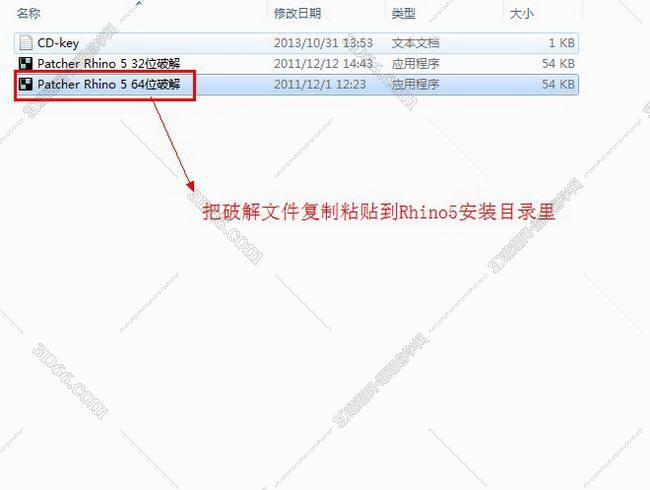 返回到犀牛Rhino5.0安装包,找到“patcher Rhino5.0 64位破解”,把这个破解文件复制粘贴到Rhino5.0的安装目录里。