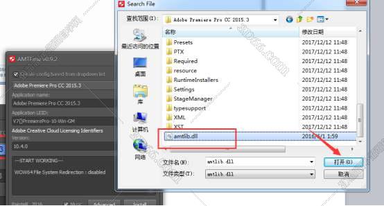 知识兔点击安装之后找到amtilb文件,这个就是我们要破解的文件,就是Premiere 2015.3 安装目录下的许可文件,知识兔点击打开。