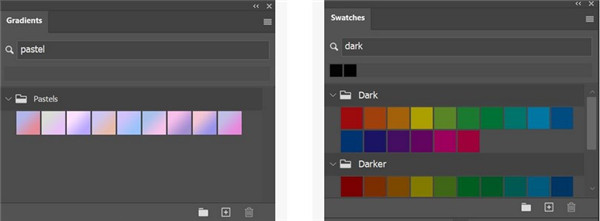 “画笔”、“色板”、“渐变”、“样式”、“图案”和“形状”面板中现在包含搜索功能,这样您可以花更少时间搜索特定预设,并将更多时间用于创意。
