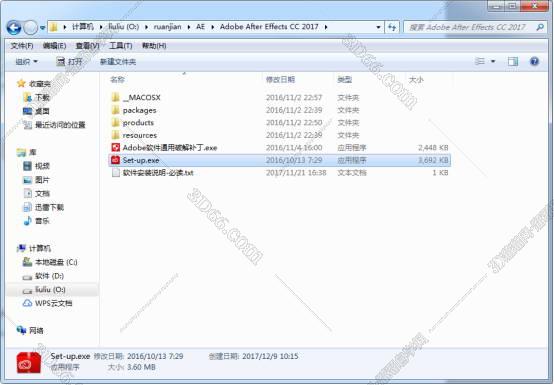 解压完成之后找打ae cc 2017的安装文件里面的安装程序set-up文件。