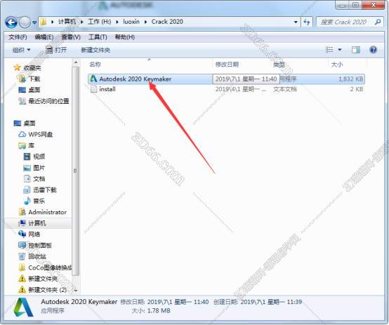 返回解压文件,知识兔打开Crack2020文件夹,启动注册机。