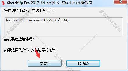 Sketchup Pro 2017会自动检测电脑上的net4.5的运行库,没有的话Sketchup Pro 2017会下载,知识兔点击安装。