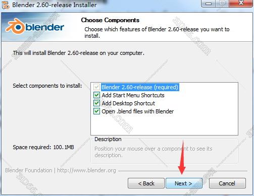 首先将blender 2.60的安装包下载下来并解压,然后知识兔打开并知识兔双击运行安装程序
