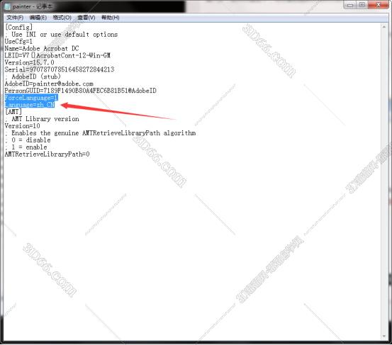 找到“PersonGUID=7189F1490B80A4FEC6B81B51@AdobeID”在它下面将“ForceLanguage=1” “Language=zh_CN”这两个复制粘贴进去,然后知识兔保存文件即可。